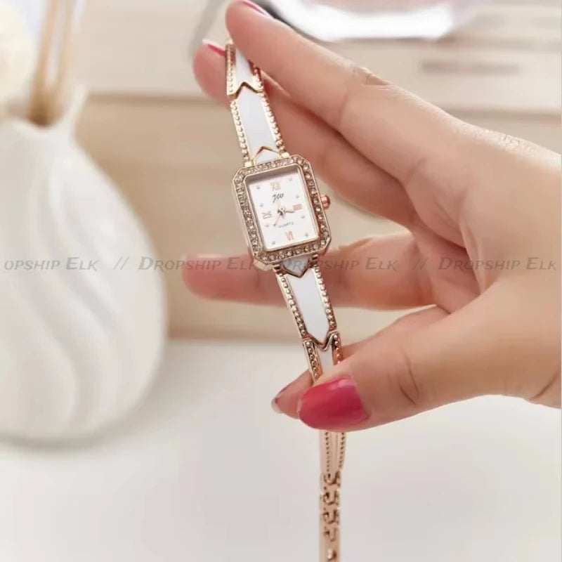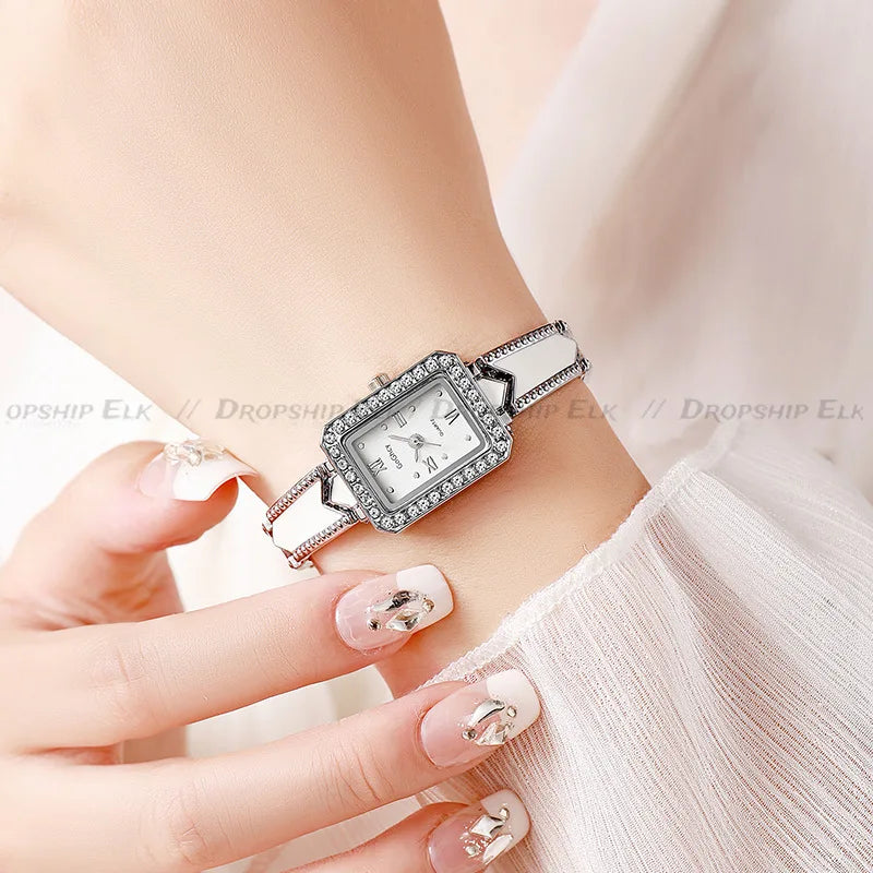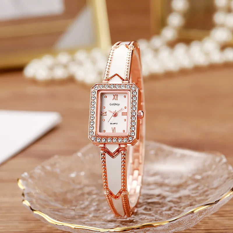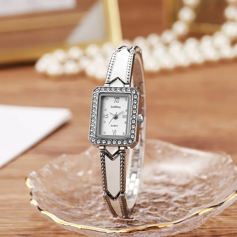 O Relógio Diva é uma peça de destaque, projetada para a mulher que não tem medo de brilhar. Seu design retangular e a caixa ricamente cravejada de gemas e pedras de alto brilho transformam este acessório em uma verdadeira joia de pulso.